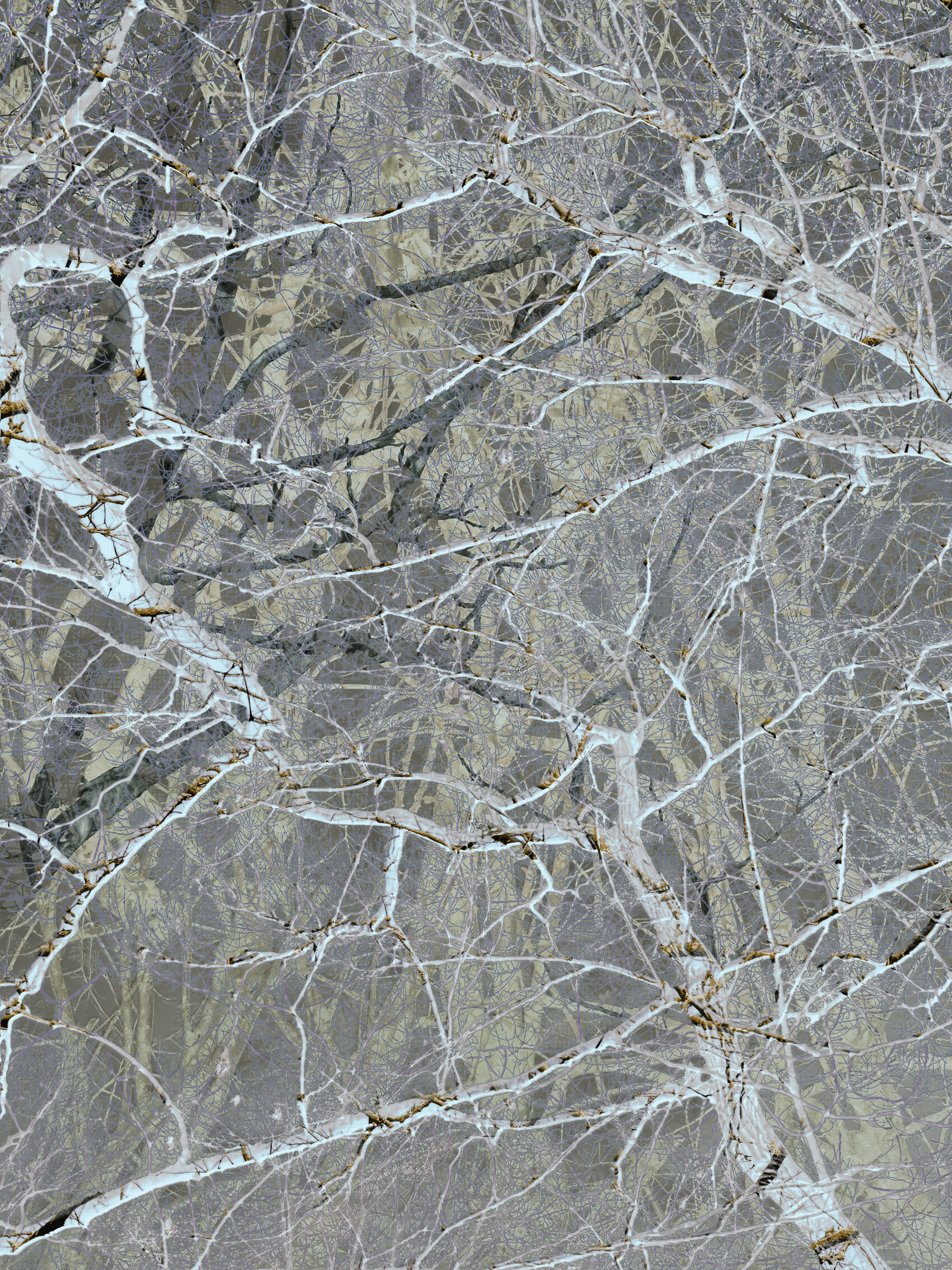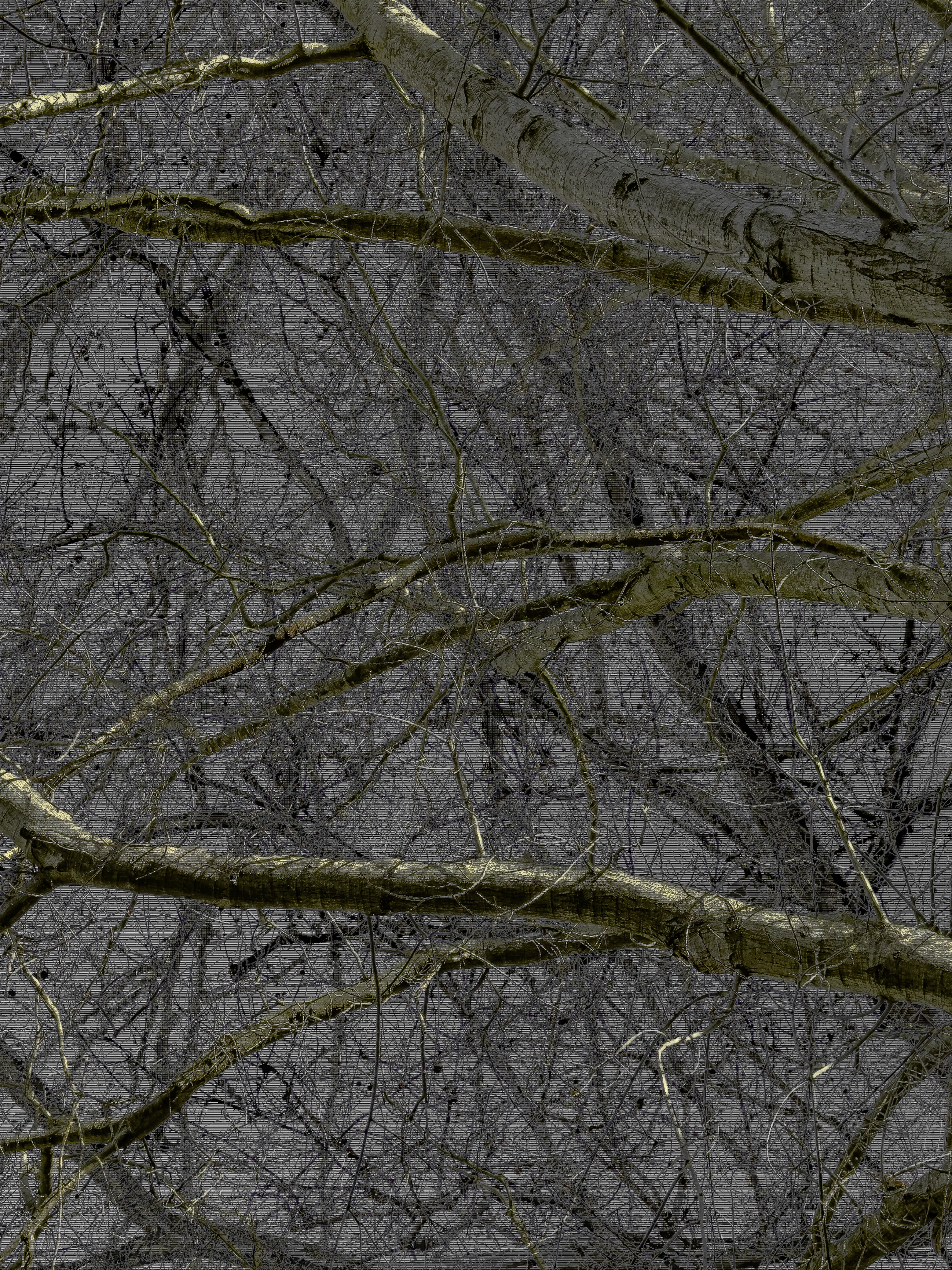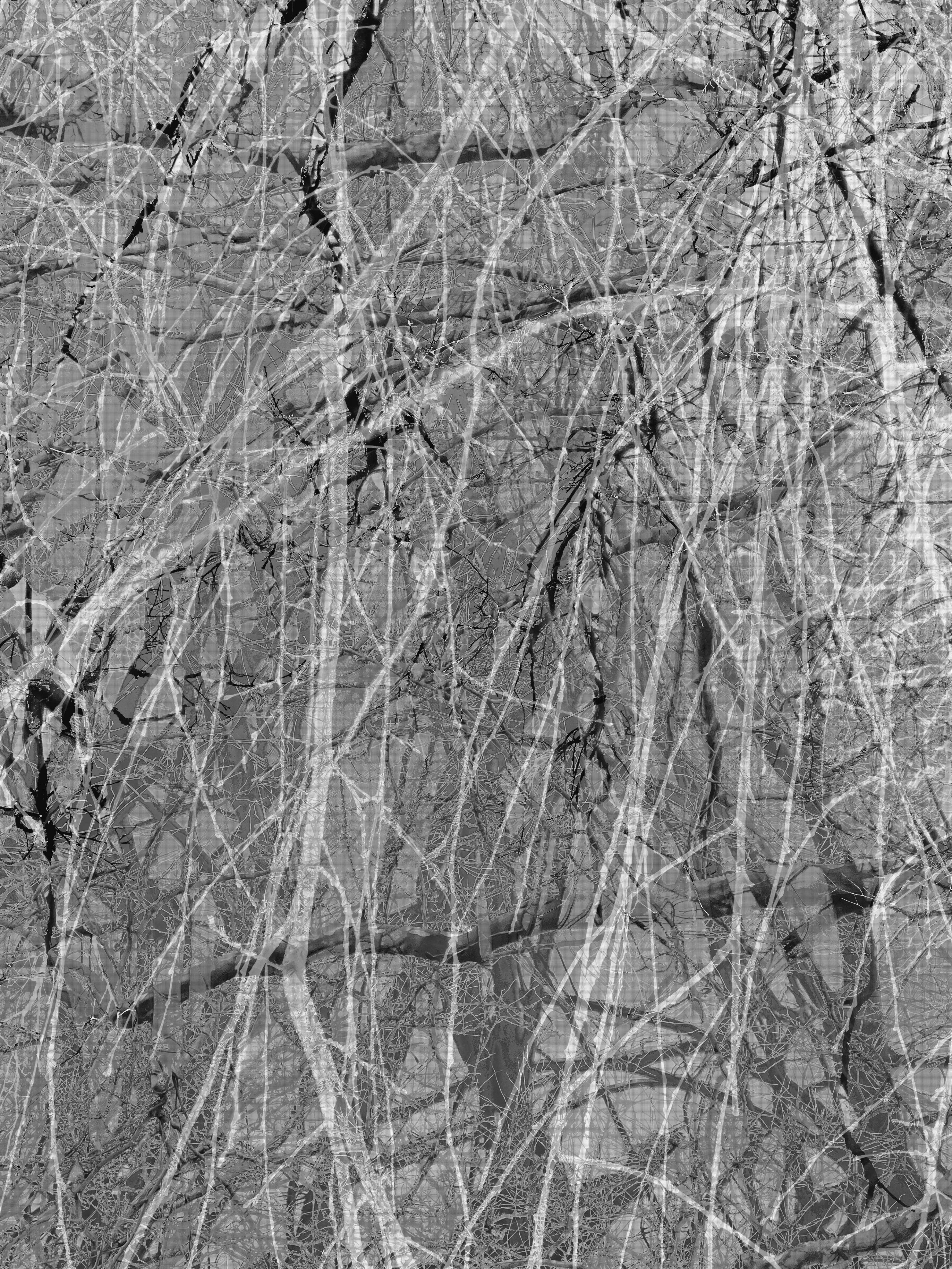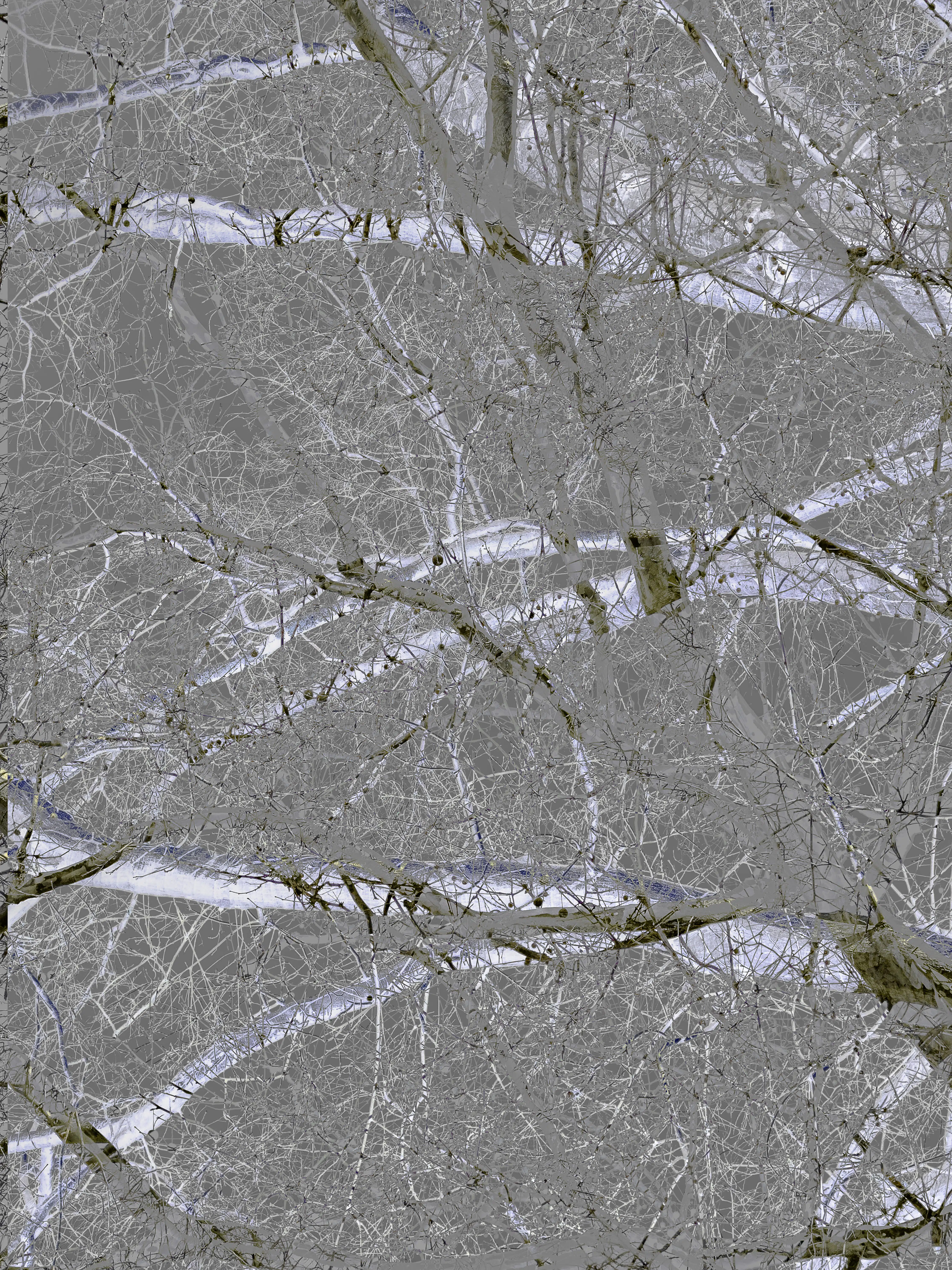 BRANCHES is an ongoing composite of tree data collected with a variety of camera devices during my morning walks. Each file is built inside Photoshop from composite parts. Dimensions are variable to 40inch widths.
