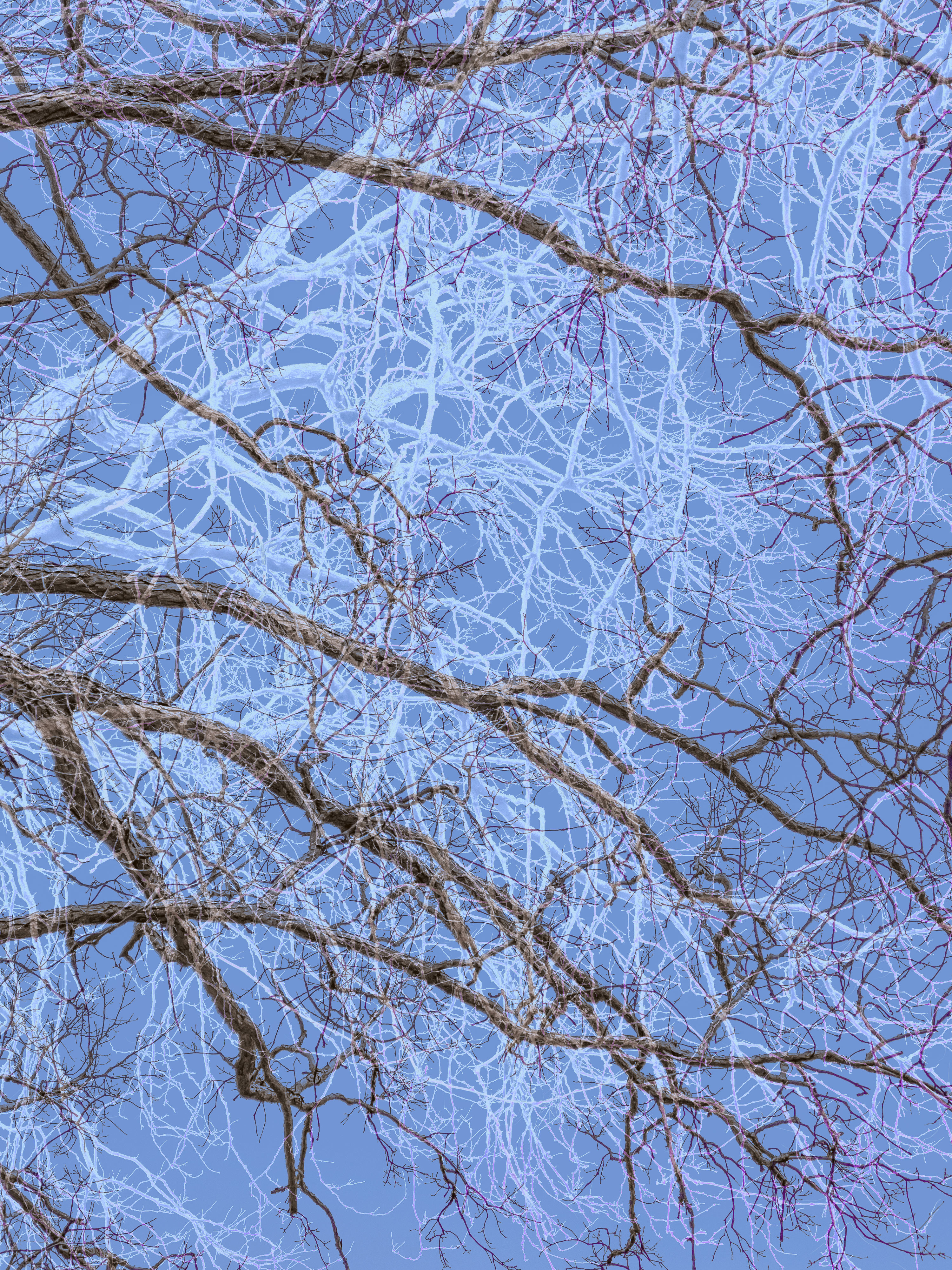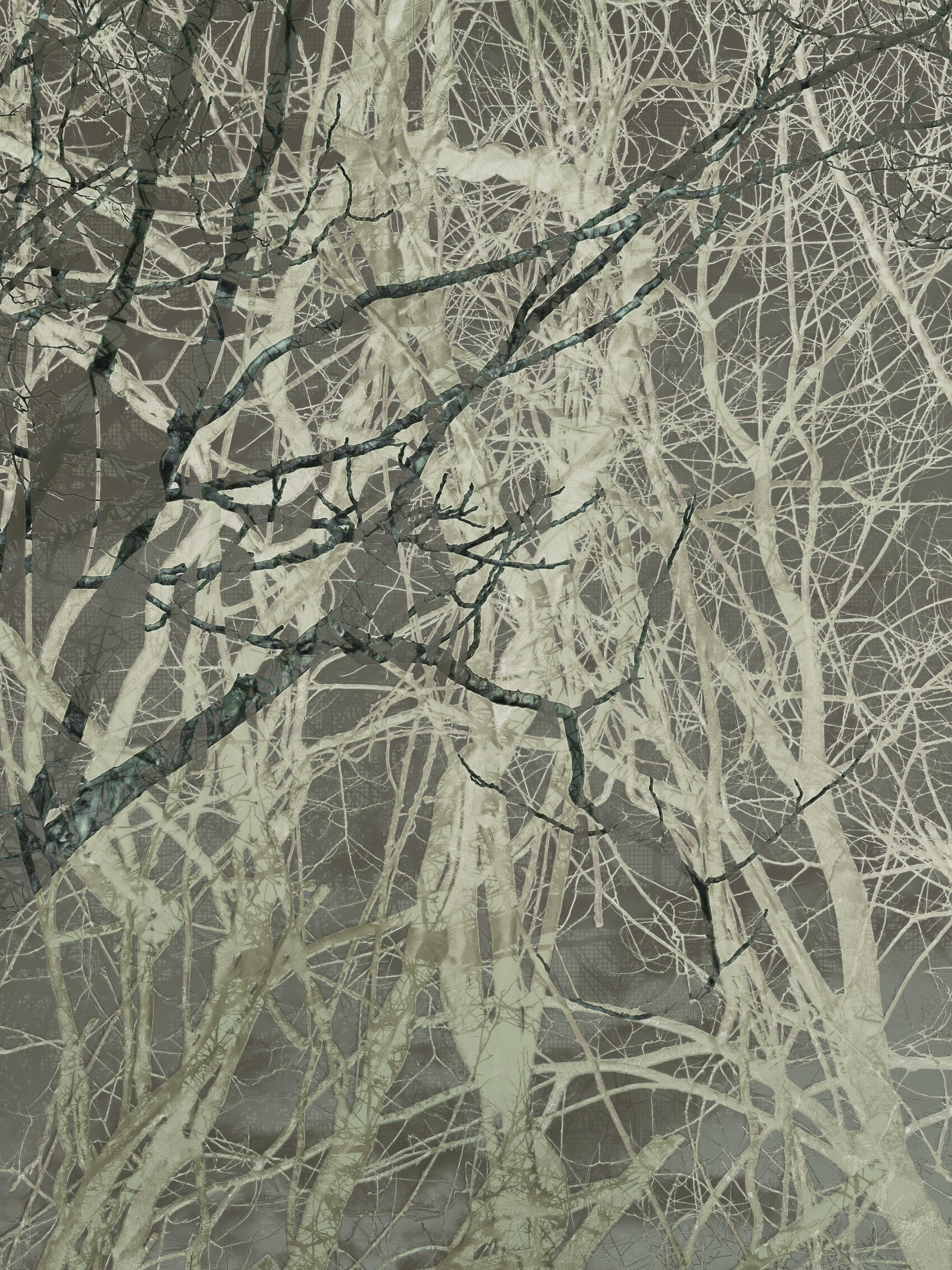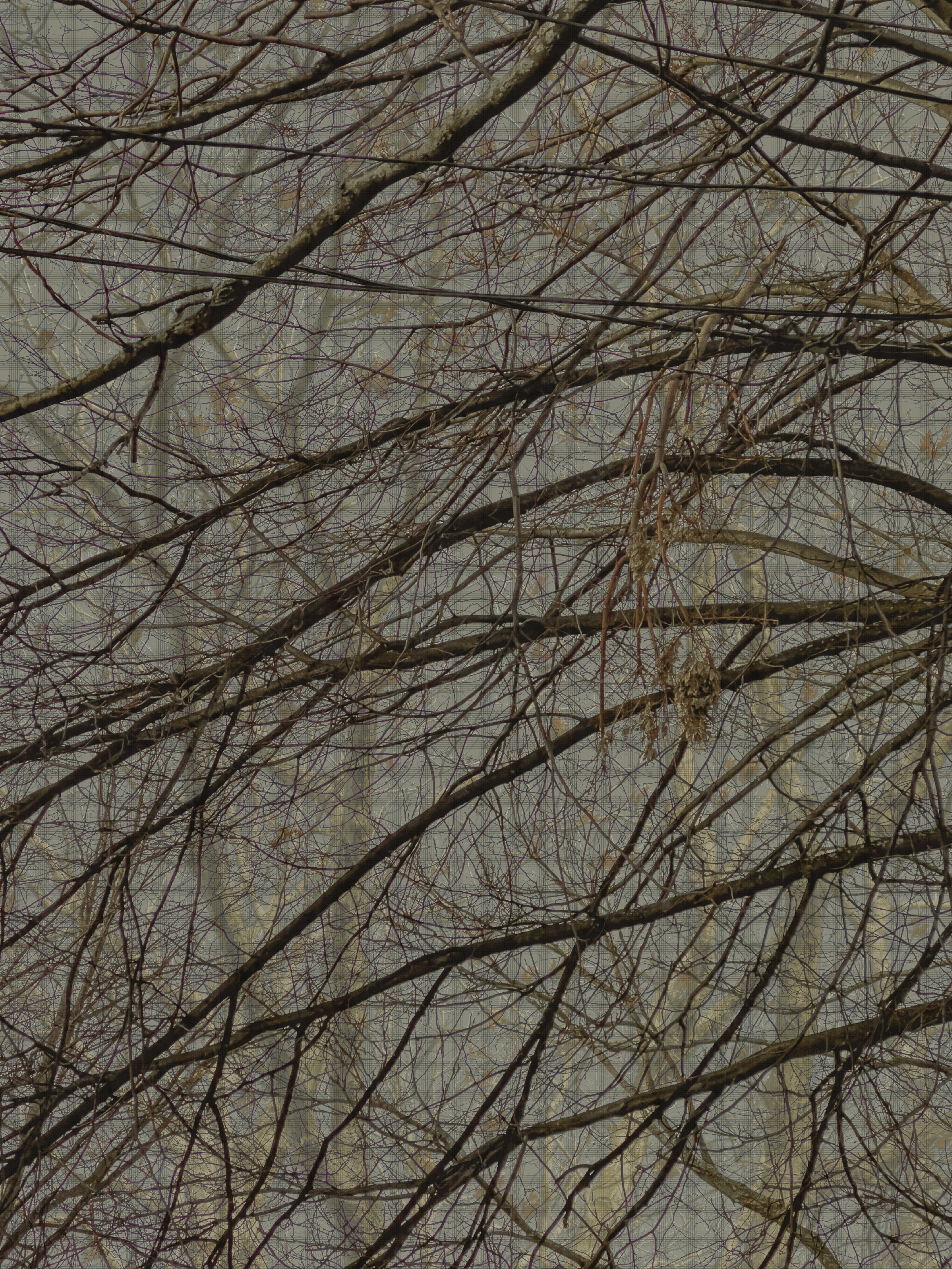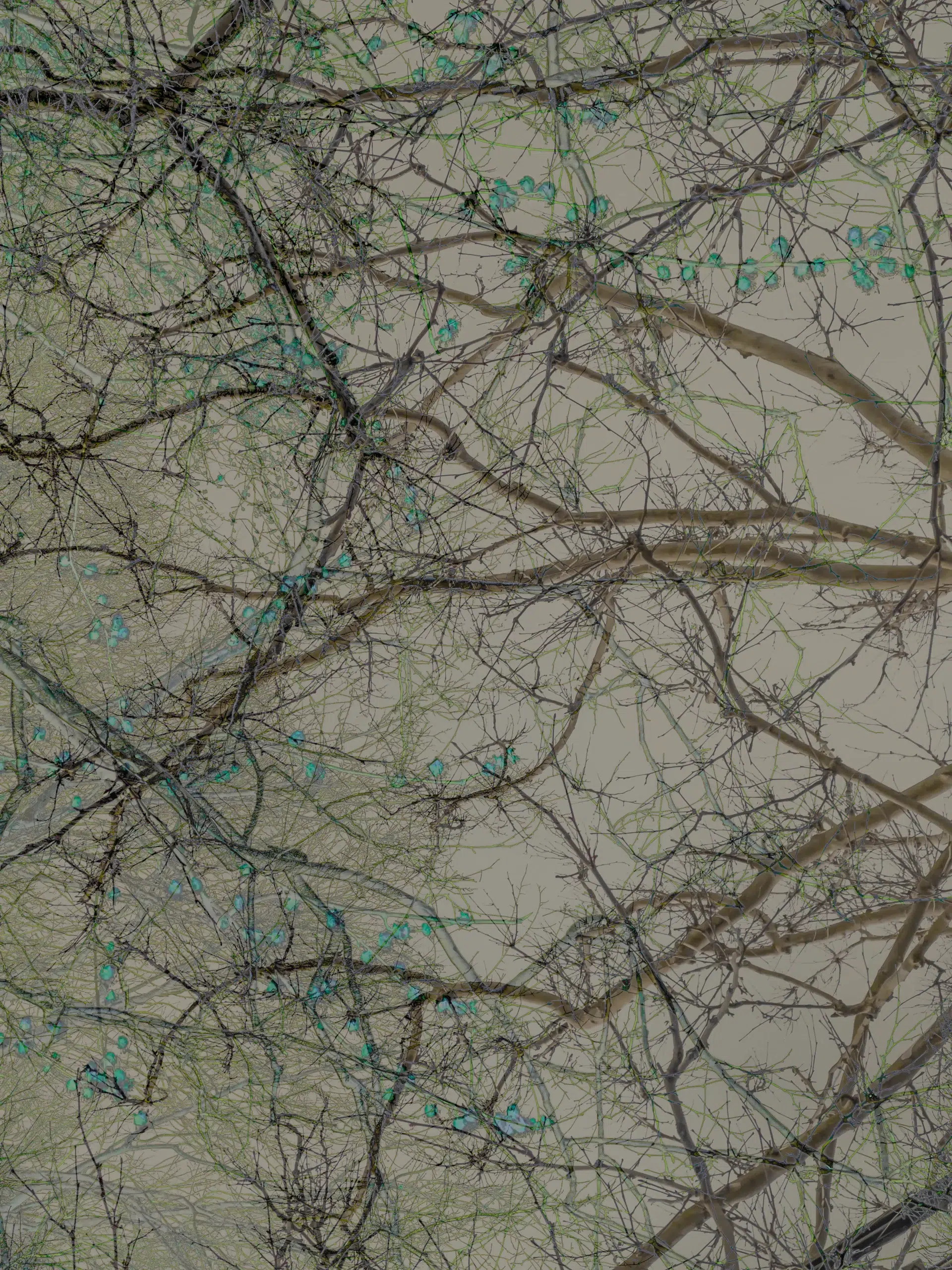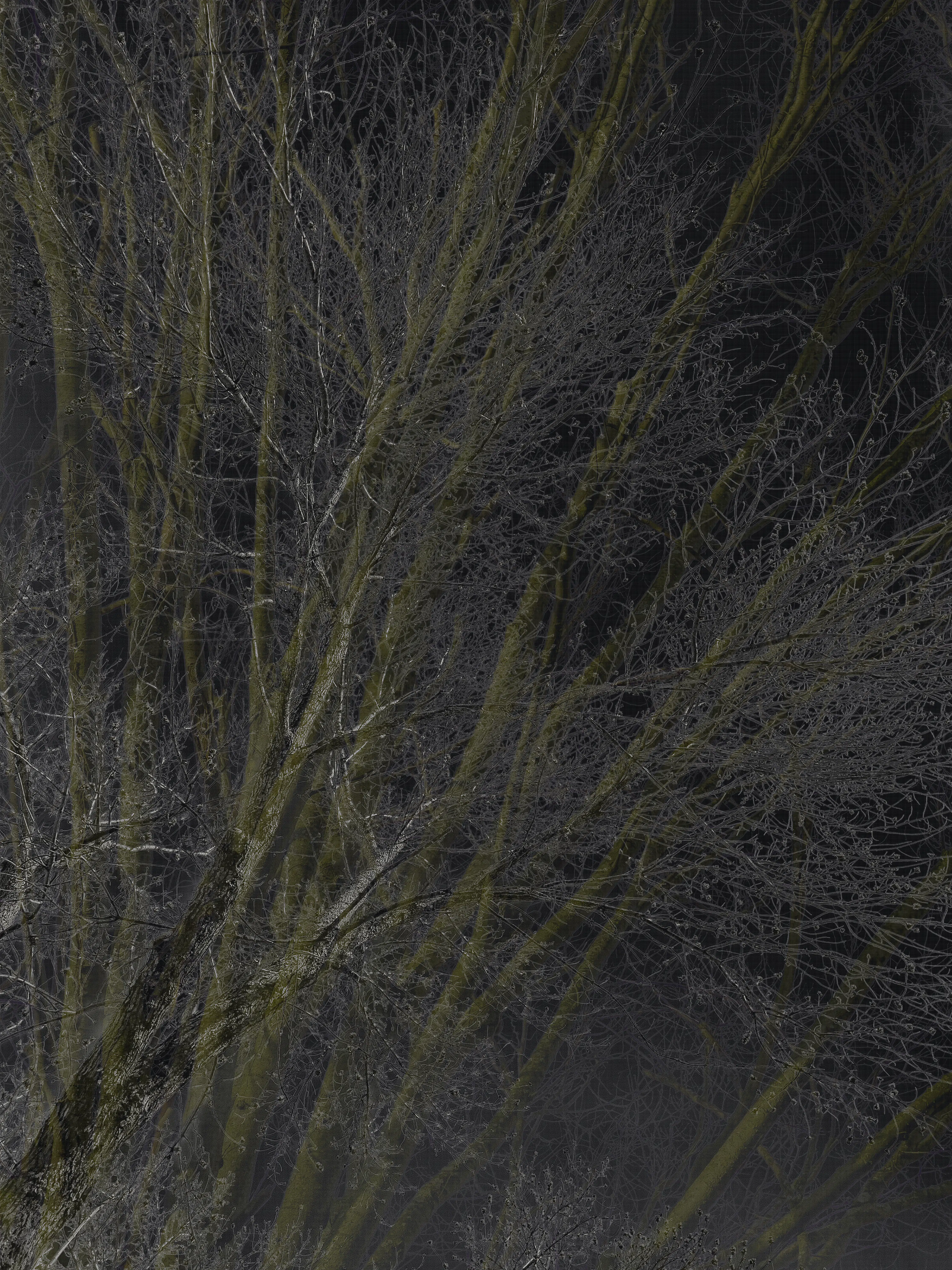 BRANCHES is an ongoing composite of tree data collected with a variety of camera devices during my morning walks. Each file is built inside Photoshop from composite parts. Dimensions are variable to 40inch widths.