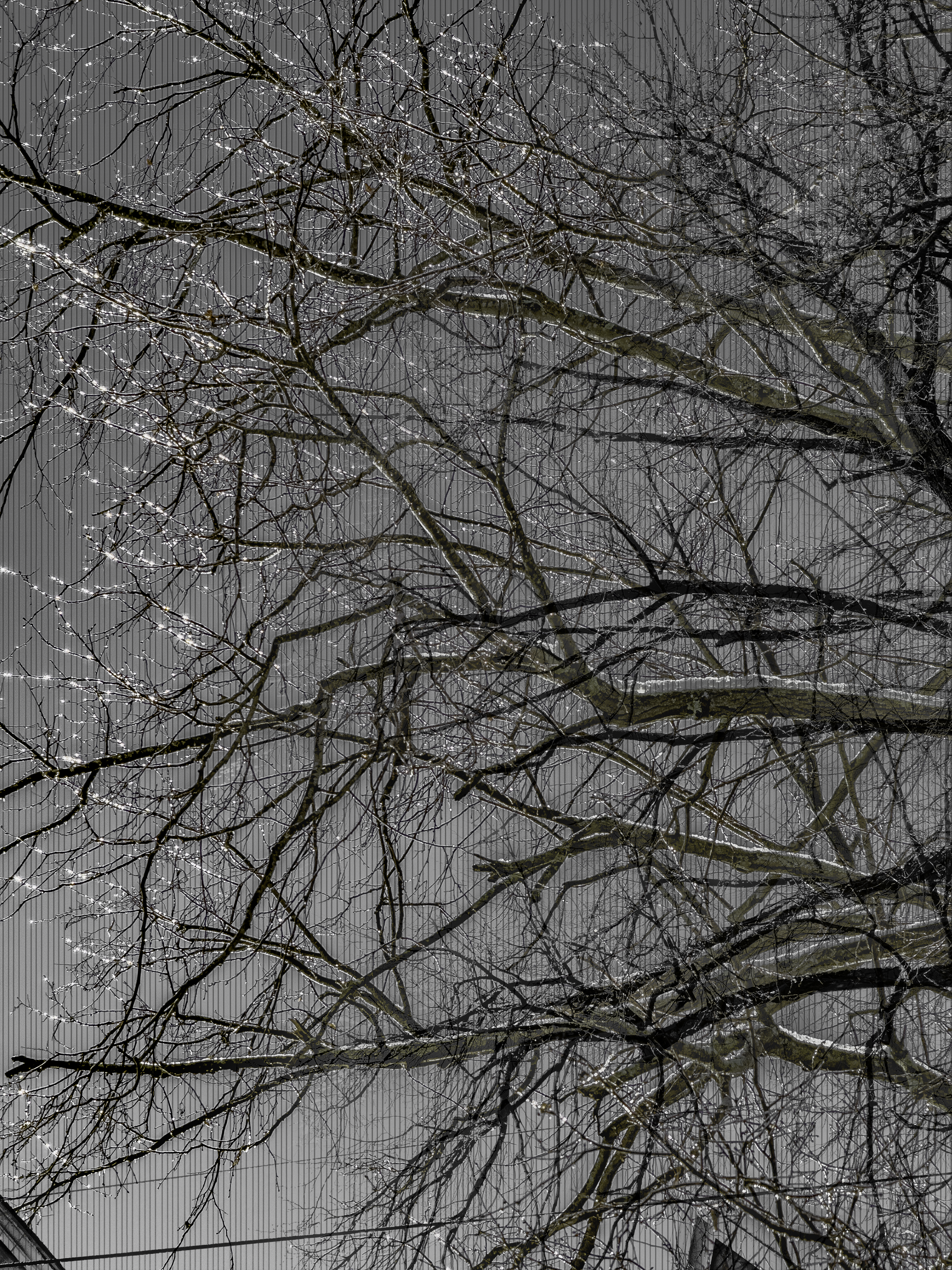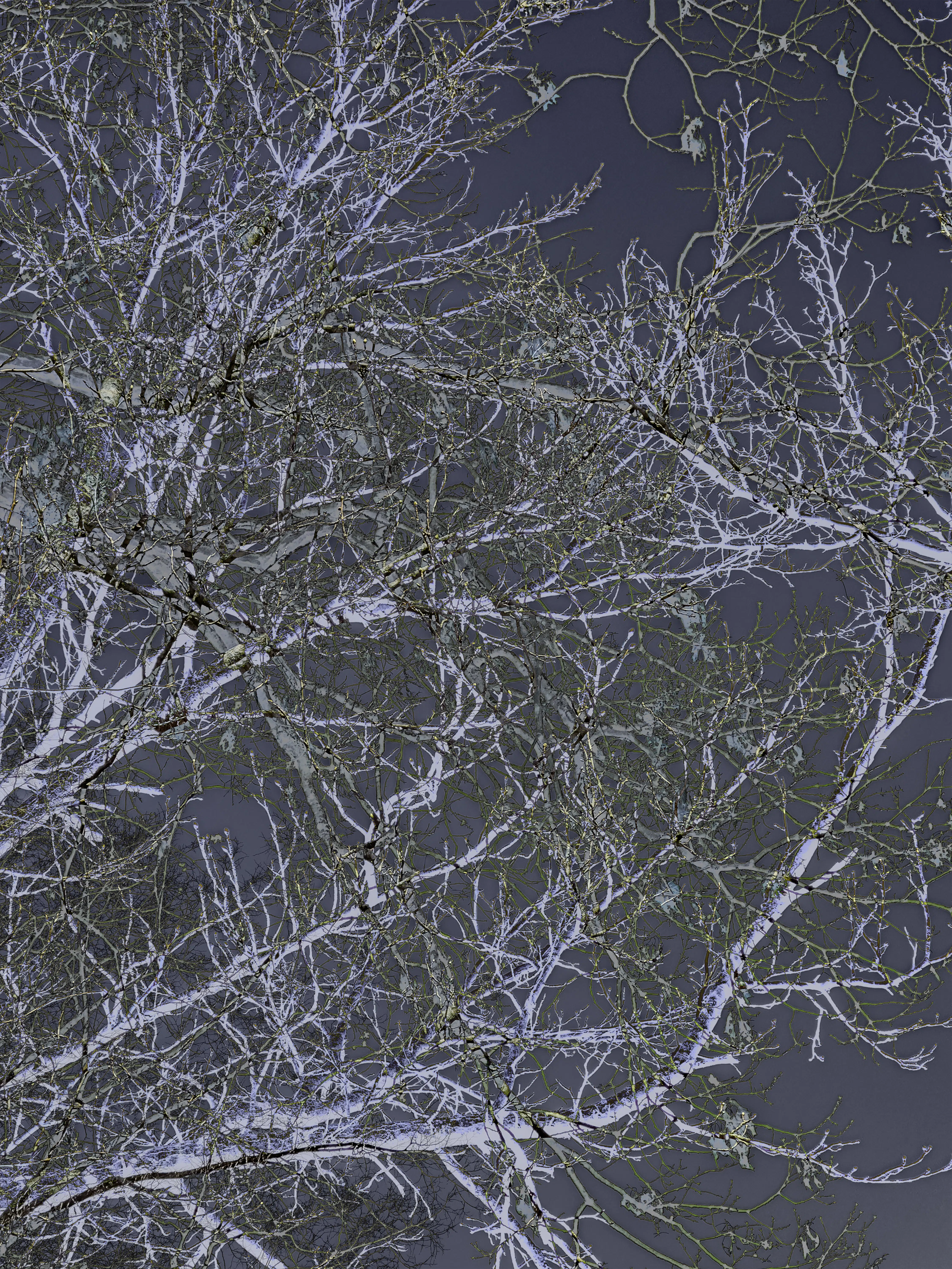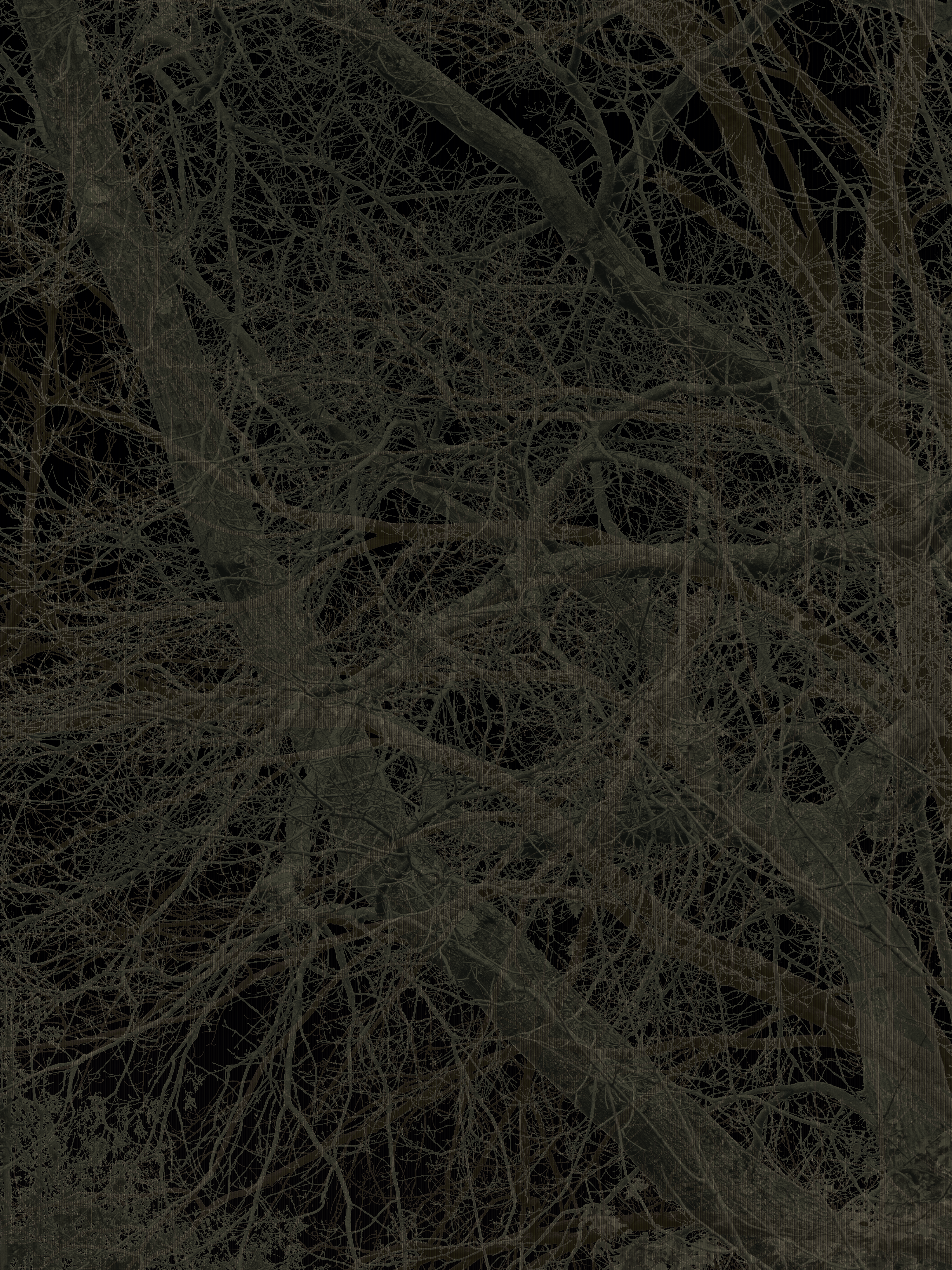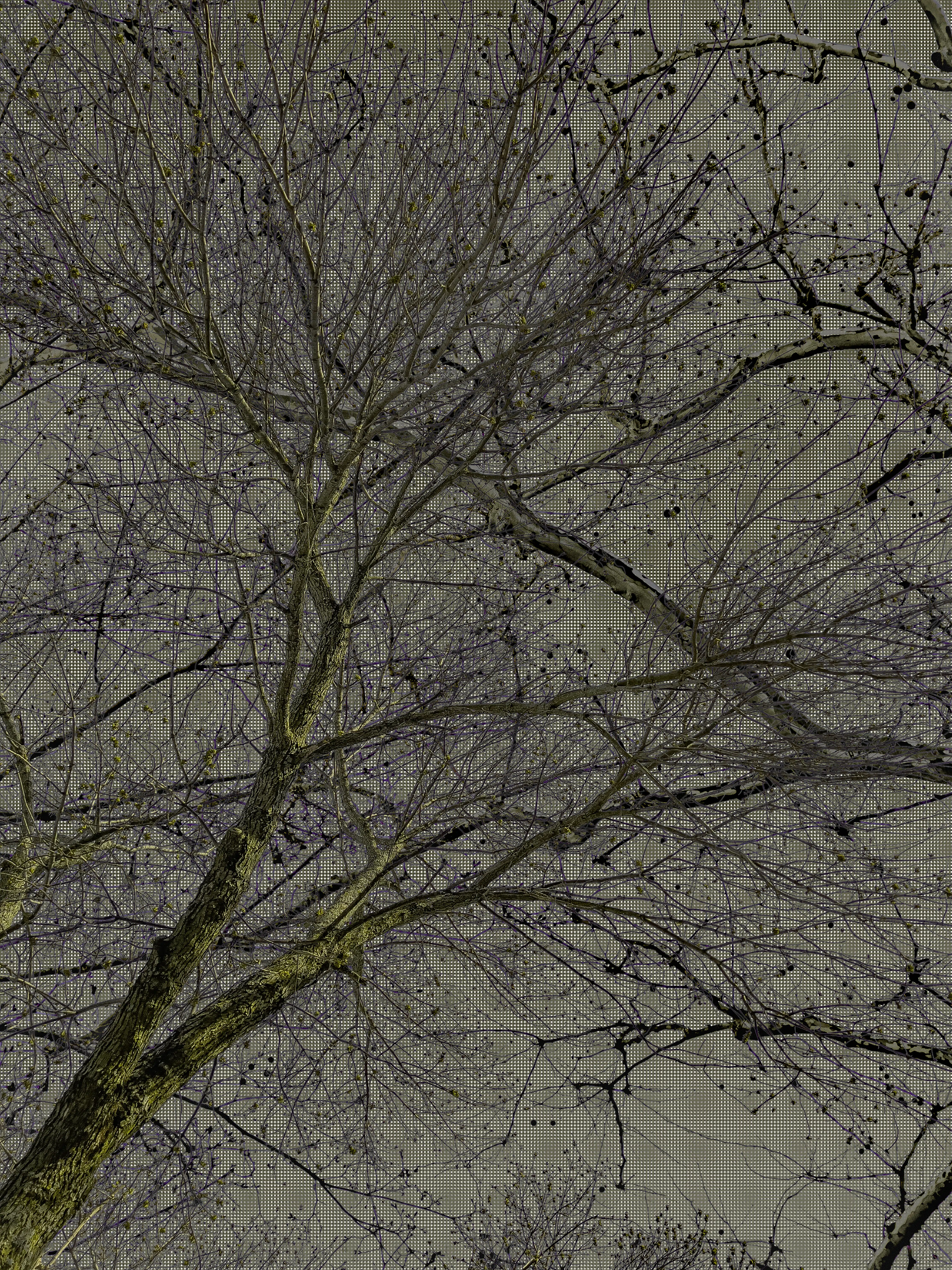 BRANCHES is an ongoing composite of tree data collected with a variety of camera devices during my morning walks. Each file is built inside Photoshop from composite parts. Dimensions are variable to 40inch widths.
