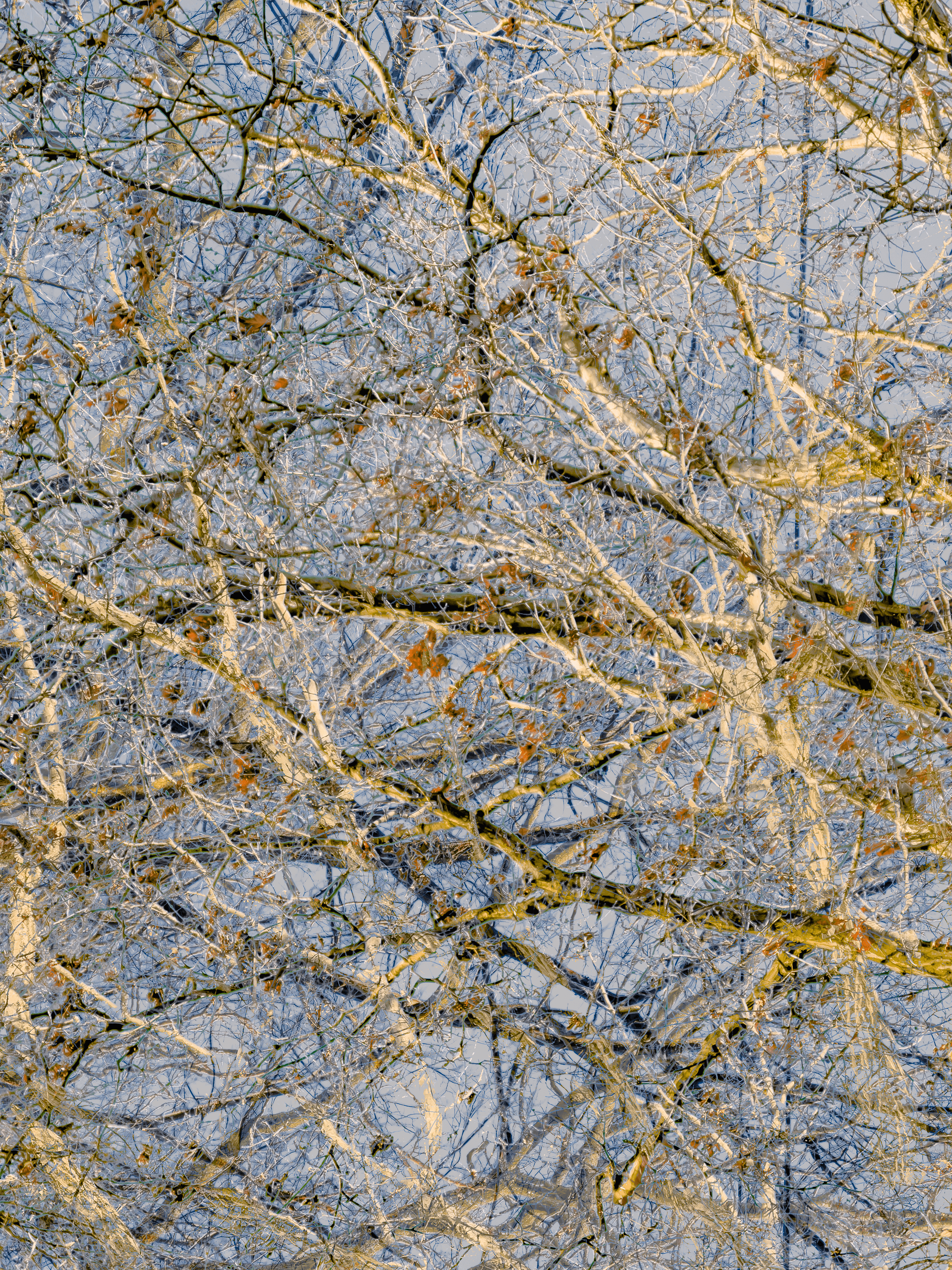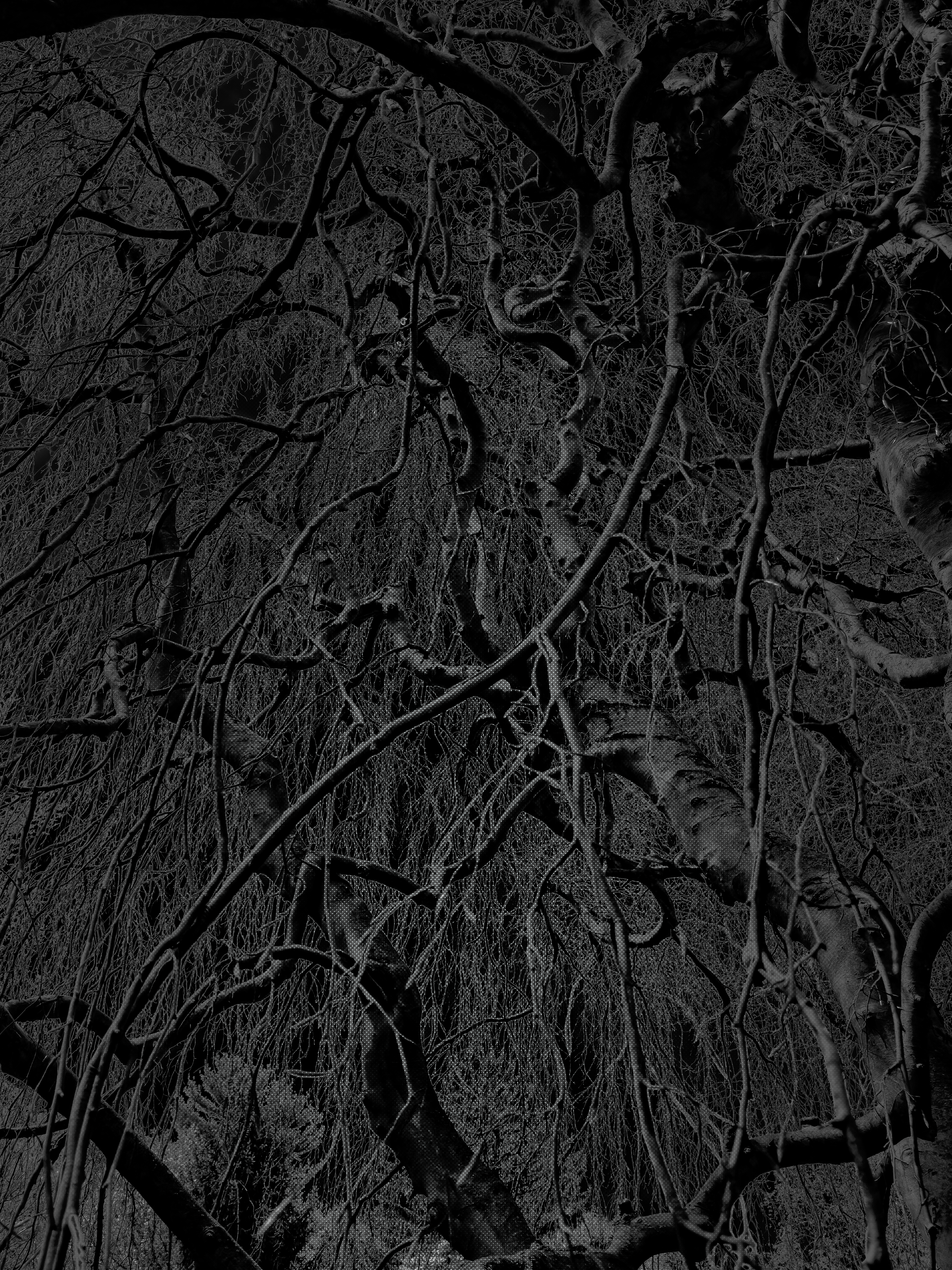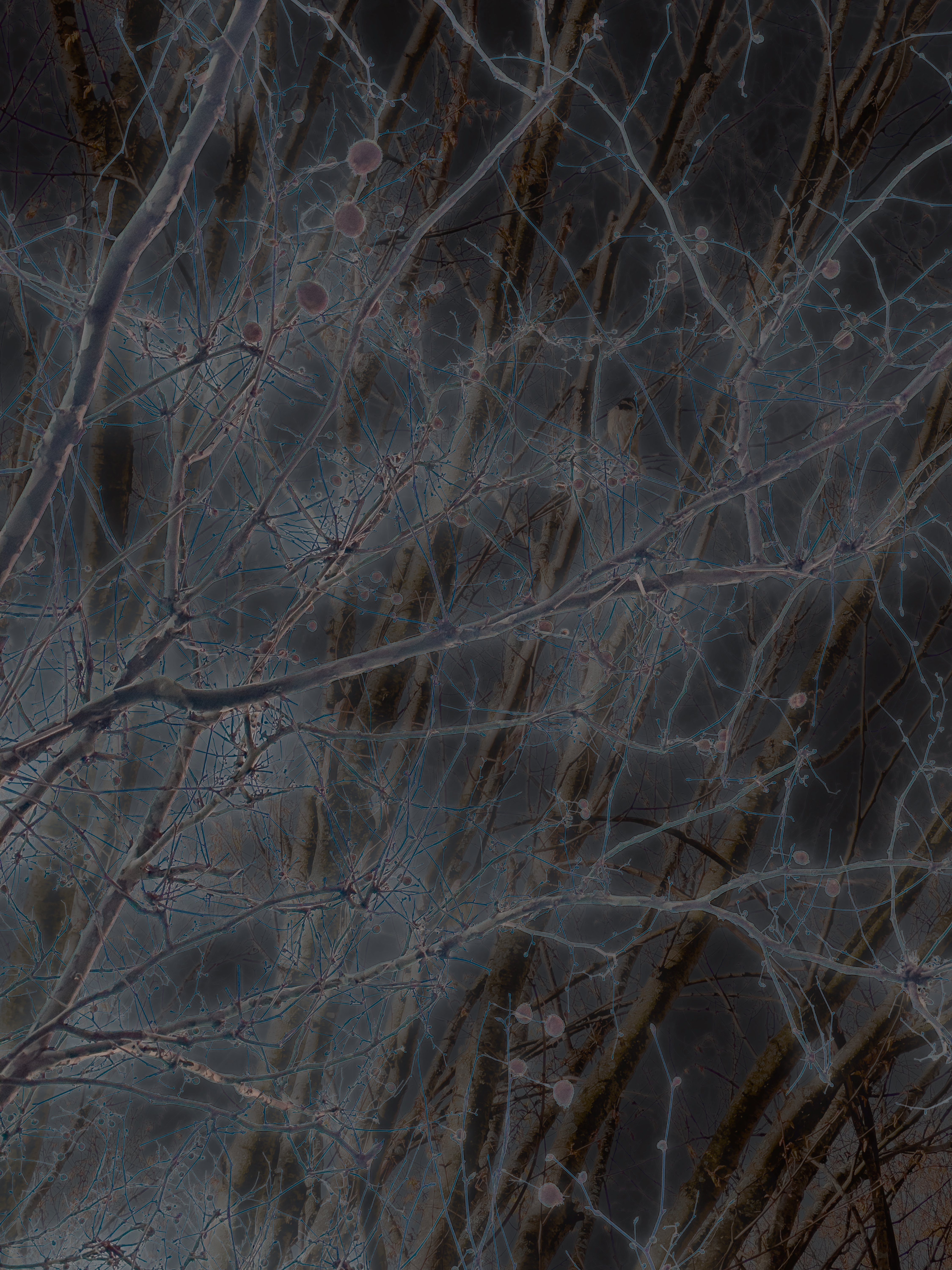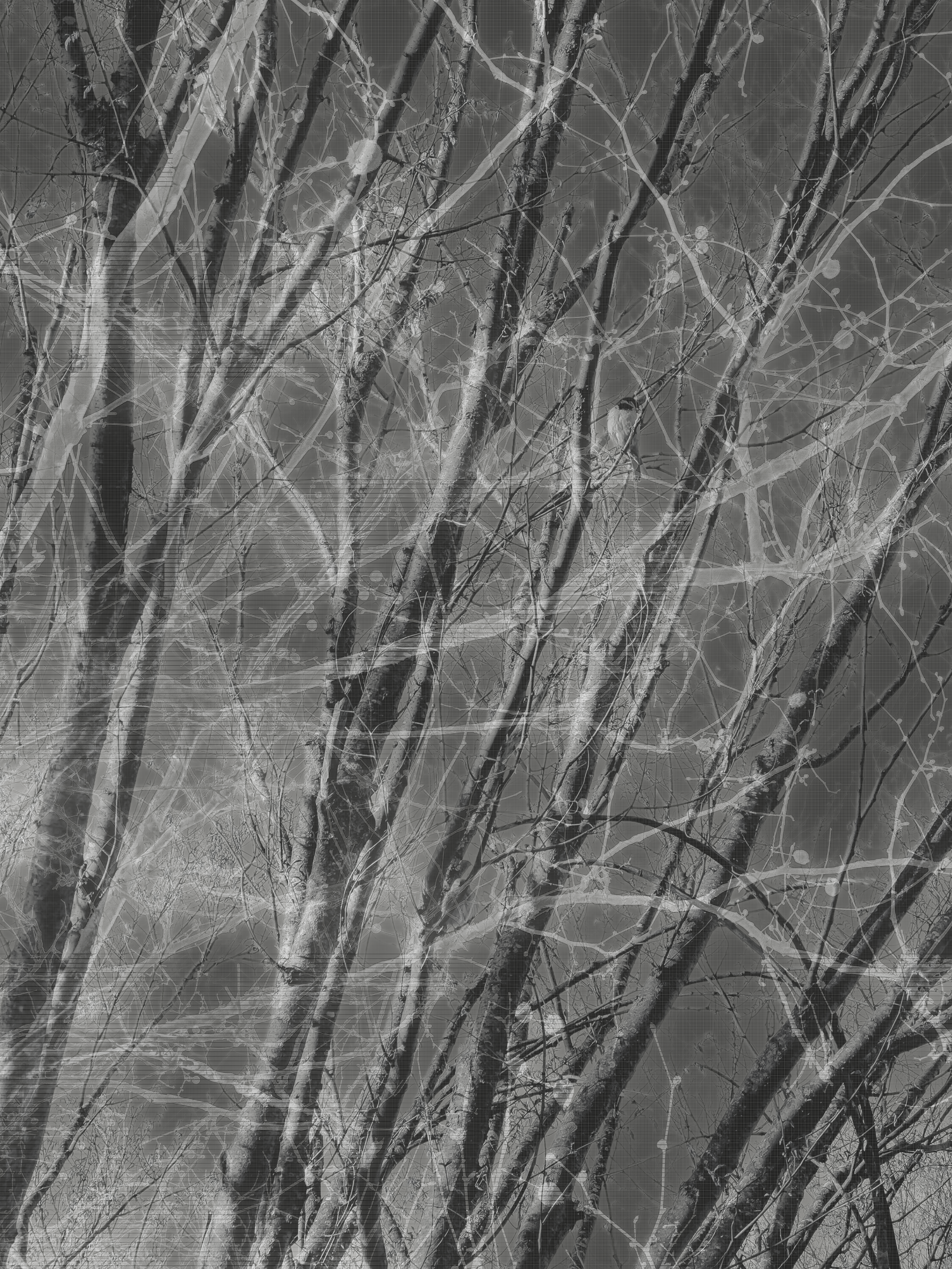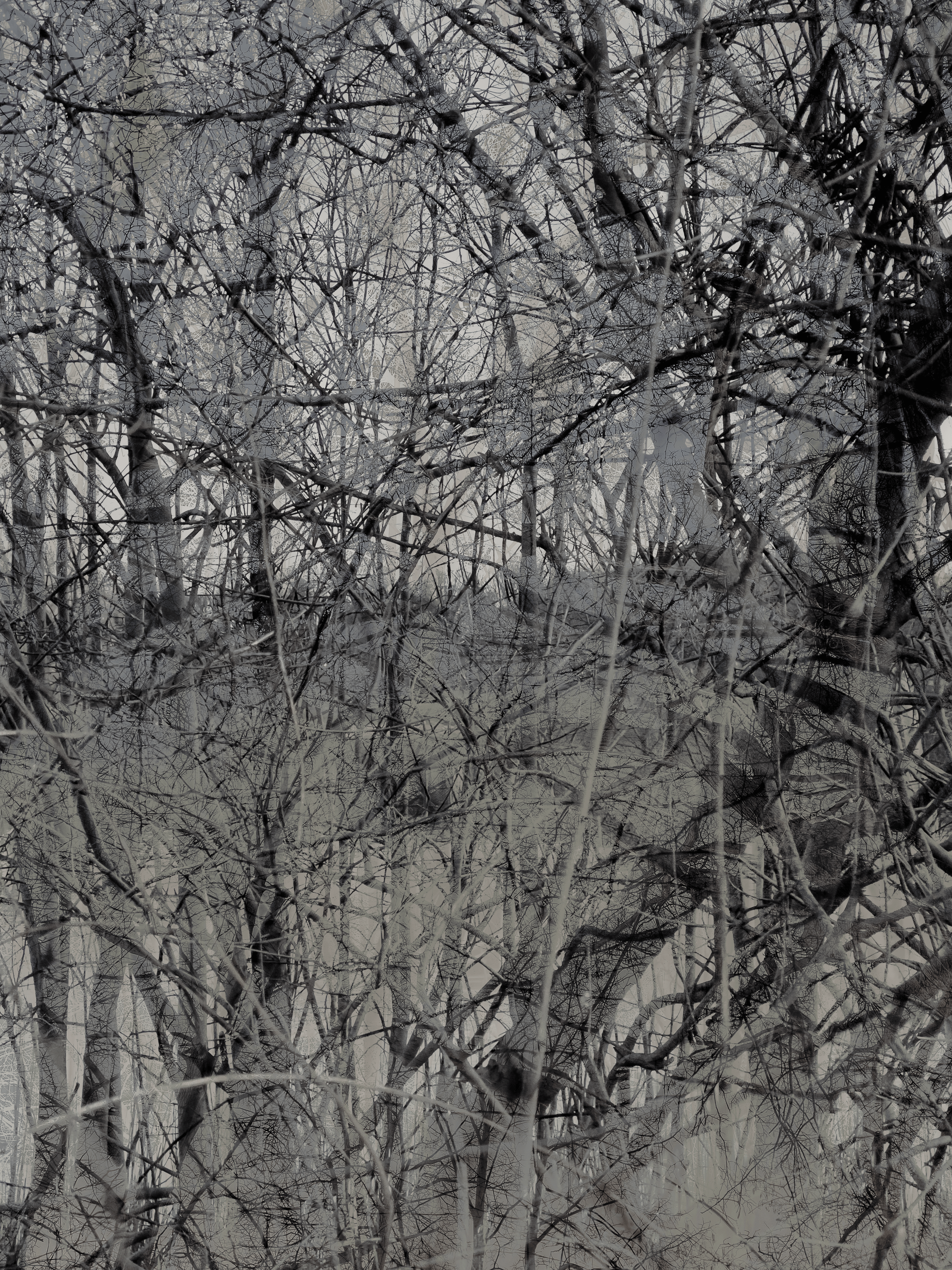 BRANCHES is an ongoing composite of tree data collected with a variety of camera devices during my morning walks. Each file is built inside Photoshop from composite parts. Dimensions are variable to 40inch widths.